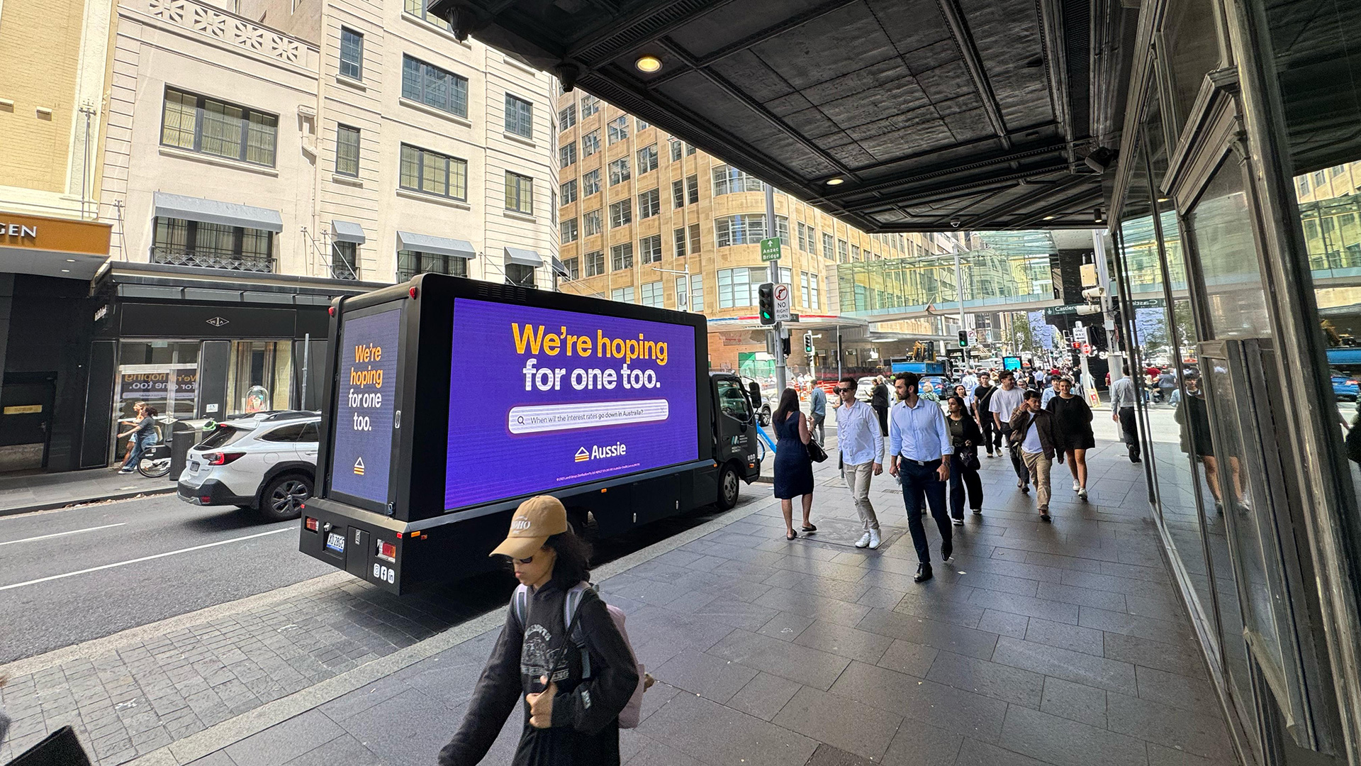 On the day of the Reserve Bank’s cash rate announcement, Aussie Home Loans launched a targeted Digital Mobile Billboard campaign across Sydney’s CBD. Vehicles circulated high-traffic areas such as Martin Place and Barangaroo, displaying timely mortgage-related messages. The campaign aimed to reach homeowners and commuters at a critical moment, reinforcing Aussie’s support for customers impacted by rate changes. This activation demonstrated the power of Digital Mobile Billboards to deliver real-time, location-based messaging with high visibility and immediate relevance.